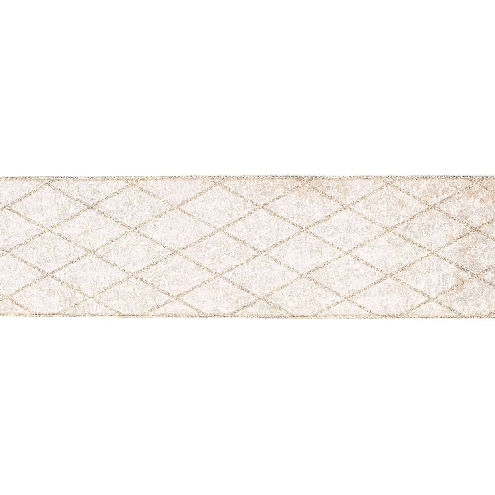 * Elegant 4" champagne crushed velvet ribbon with a shimmering gold glitter diamond pattern for a luxurious touch.