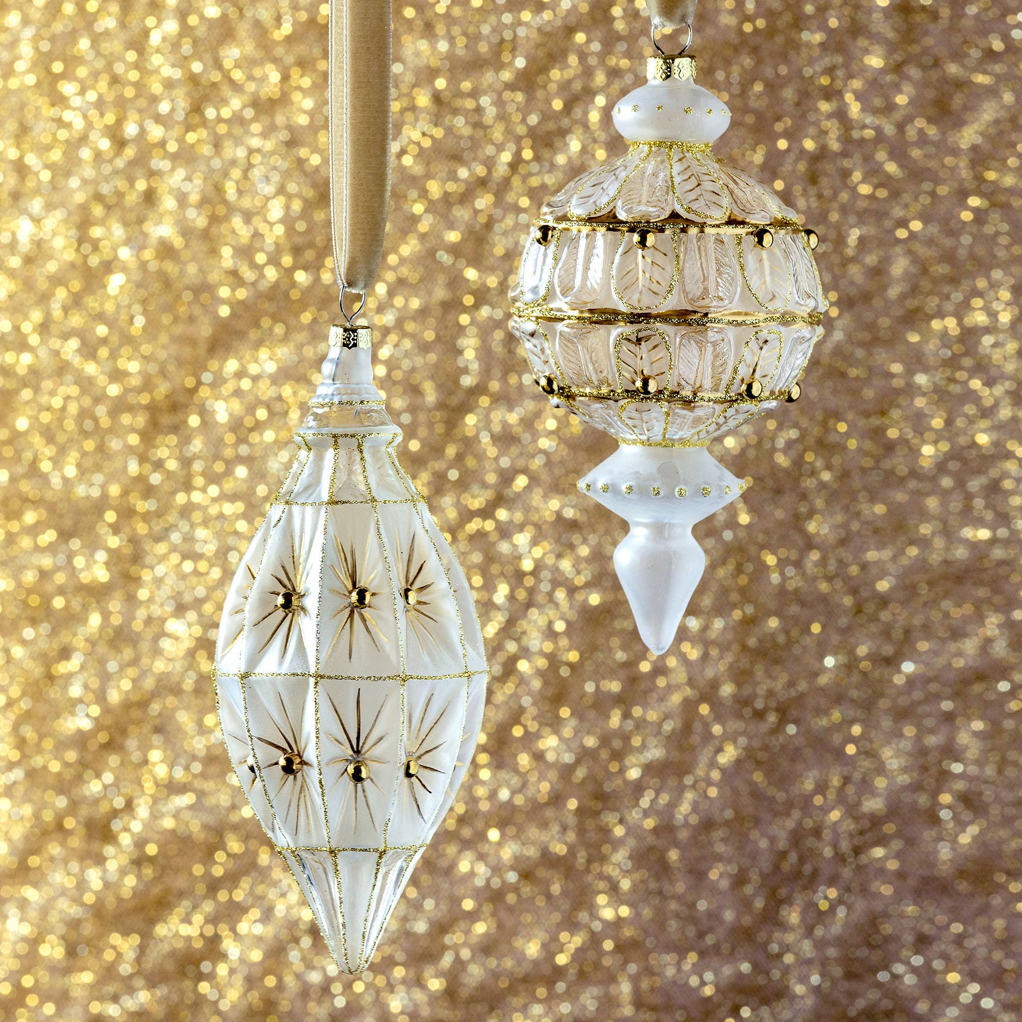 Frosted Glass Starburst Pattern Ball/Finial Ornament, 2 Assorted Styles